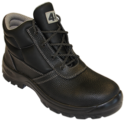Chaussure de sécurité haute. Dessus en cuir enduit PU embossé 1,6/1,8mm. Doublure Mesh. Semelle Polyuréthane. Protection par embout acier 200J et semelle anti-perforation acier. Absorption d’énergie par le talon. Chaussure imperméable, semelle antistatique, anti-dérapante et résistante aux huiles et hydrocarbures.